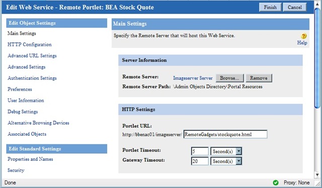 - Create a new web service, selecting a remote server object that points to your web server and entering the URL of your portlet: